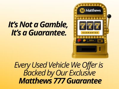 At Matthews Auto, we don't want you to feel like buying a used vehicle is a gamble. That's why we created the Matthews 777 Guarantee.