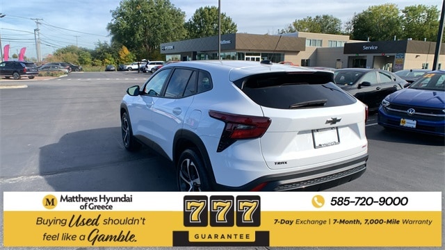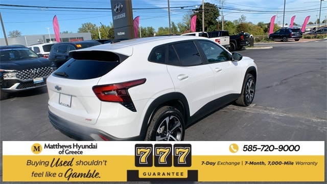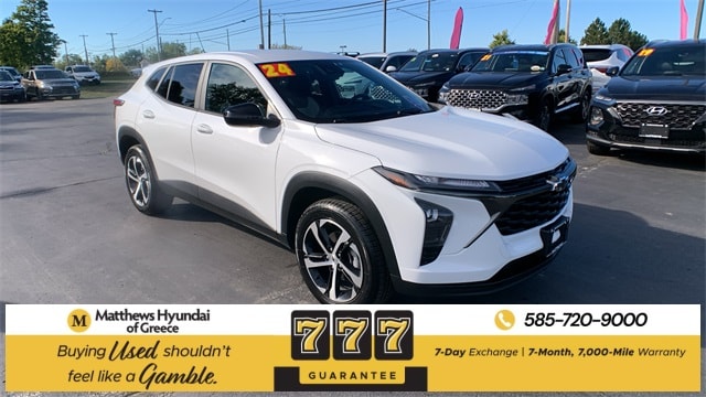 Summit White 2024 Chevrolet Trax 1RS FWD 6-Speed Automatic 1.2L Ecotec Turbo DOHC DI w/VVT 2-Way Adjustable Front Head Restraints, 3.50 Final Drive Axle Ratio, 4 Speakers, 4-Speaker Audio System Feature, 4-Way Manual Front Passenger Seat Adjuster, 4-Wheel Disc Brakes, 6-Way Manual Driver Seat Adjuster, ABS brakes, Air Conditioning, Alloy wheels, AM/FM radio: SiriusXM, Auto High-beam Headlights, Brake assist, Bumpers: body-color, Cloth Seat Trim, Compass, Delay-off headlights, Driver Confidence Package, Driver door bin, Driver vanity mirror, Dual front impact airbags, Dual front side impact airbags, Electronic Stability Control, Emergency communication system: OnStar and Chevrolet connected services capable, Exterior Parking Camera Rear, Front & Rear All-Weather Floor Liners (LPO), Front anti-roll bar, Front Bucket Seats, Front Center Armrest, Front reading lights, Front wheel independent suspension, Fully automatic headlights, Heated door mirrors, Heated Driver & Front Passenger Seats, Heated front seats, Heated steering wheel, Illuminated entry, Lane Change Alert w/Side Blind Zone Alert, License Plate Front Mounting Package, Low tire pressure warning, Occupant sensing airbag, Outside temperature display, Overhead airbag, Overhead console, Panic alarm, Passenger door bin, Passenger vanity mirror, Power door mirrors, Power steering, Power windows, Preferred Equipment Group 1RS, Premium audio system: Chevrolet Infotainment 3, Radio data system, Radio: Chevrolet Infotainment 3 System w/AM/FM, Rear Cross-Traffic Alert, Rear Park Assist, Rear Park Assist (DISC), Rear window defroster, Rear window wiper, Remote keyless entry, Security system, SiriusXM, Speed control, Split folding rear seat, Spoiler, Sport steering wheel, Steering wheel mounted audio controls, Tachometer, Telescoping steering wheel, Tilt steering wheel, Traction control, Trip computer, Variably intermittent wipers, Wheels: 18" Black-Painted Machined Aluminum.