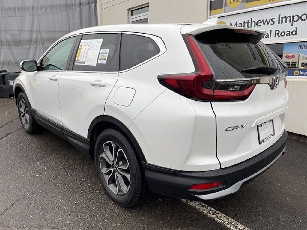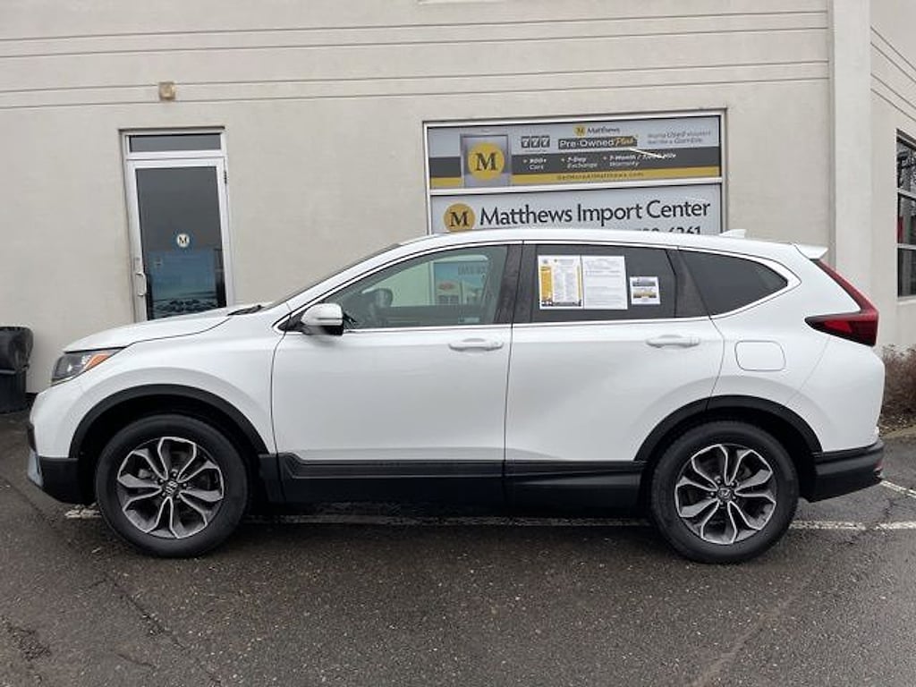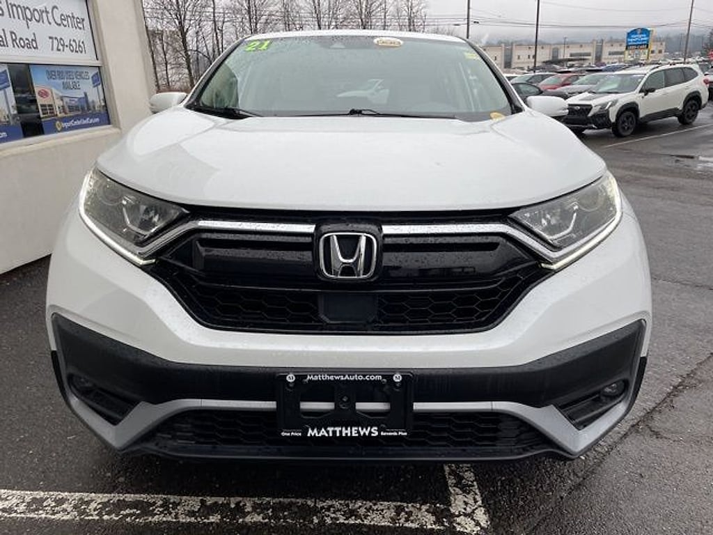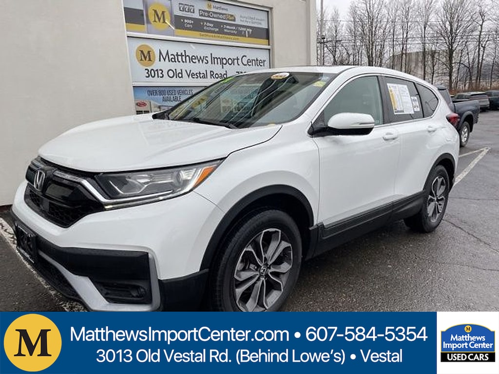 Matthews Import Center promises each customer a thorough and confident 120-point inspection on our used inventory guaranteeing a relaxing and peace-of-mind experience. We are located behind Lowes in Vestal NY. Or call us at (607) 729 - 6261Matthews Import Center3013 Old Vestal RoadVestal NY 13850. White 2021 Honda EX CR-V AWD CVT 1.5L I4 DOHC 16VOdometer is 5191 miles below market average! 27/32 City/Highway MPG