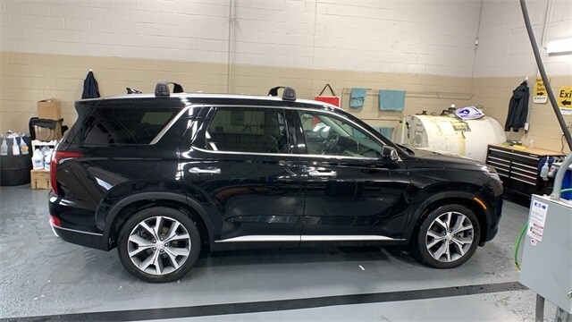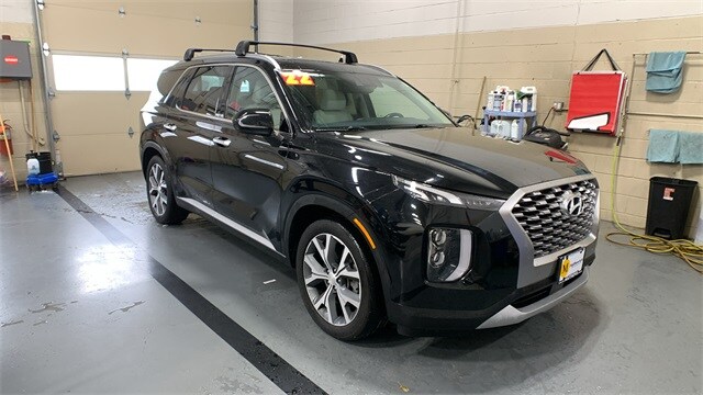 Abyss Black Pearl 2022 Hyundai Palisade SEL AWD 8-Speed Automatic with SHIFTRONIC V6 115-Volt AC Power Outlet, 3.648 Axle Ratio, 3rd row seats: split-bench, 3rd Row USB Outlets, 4-Wheel Disc Brakes, 6 Speakers, 7" High-Resolution Cluster Display, 8-Passenger Bench Seating P4, 8-Way Power Passenger Seat, 8P Bench Seat Package, ABS brakes, Acoustic Front Side Glass, Air Conditioning, Alloy wheels, AM/FM radio, Apple CarPlay & Android Auto, Auto High-beam Headlights, Auto Leveling Rear Suspension, Auto-dimming Rear-View mirror, Automatic temperature control, Brake assist, Bumper Applique, Bumpers: body-color, Cargo Block, Cargo Net, Cargo Package, Cargo Tray, Carpeted Floor Mats, Cloth Seat Trim, Convenience Package P2, Delay-off headlights, Driver door bin, Driver vanity mirror, Driver's Seat Integrated Memory System, Dual front impact airbags, Dual front side impact airbags, Electronic Stability Control, First Aid Kit, Four wheel independent suspension, Front anti-roll bar, Front Bucket Seats, Front Center Armrest, Front dual zone A/C, Front Parking Sensors, Front reading lights, Fully automatic headlights, Garage door transmitter: HomeLink, Hands-Free Smart Liftgate, Heated 2nd Row Seats, Heated door mirrors, Heated Front Bucket Seats, Heated front seats, Heated Steering Wheel, Highway Drive Assist I, Illuminated entry, Knee airbag, Leather Seat Trim, LED Taillights, Low tire pressure warning, Occupant sensing airbag, Outside temperature display, Overhead airbag, Overhead console, Panic alarm, Passenger door bin, Passenger vanity mirror, Power 3rd Row Seating, Power door mirrors, Power driver seat, Power moonroof, Power steering, Power windows, Premium Dashboard & Door Armrests, Premium Package P3, Radio data system, Radio: AM/FM/MP3 Display Audio, Radio: AM/FM/MP3 Premium Audio System, Rear air conditioning, Rear anti-roll bar, Rear audio controls, Rear reading lights, Rear Side Window Sunshades, Rear window defroster, Rear window wiper, Reclining 3rd row seat, Remote keyless entry, Roof Rack Cross Rails, Security system, Speed control, Speed-sensing steering, Split folding rear seat, Spoiler, Steering wheel mounted audio controls, Tachometer, Telescoping steering wheel, Tilt steering wheel, Traction control, Trip computer, Turn signal indicator mirrors, Ultrasonic Rear Occupant Alert, Variably intermittent wipers, Wheel Locks, Wheels: 18" x 7.5J Machine Finish Alloy, Wheels: 20" x 7.5J Split 5-Spoke Machined Alloy, Wireless Phone Charger.
